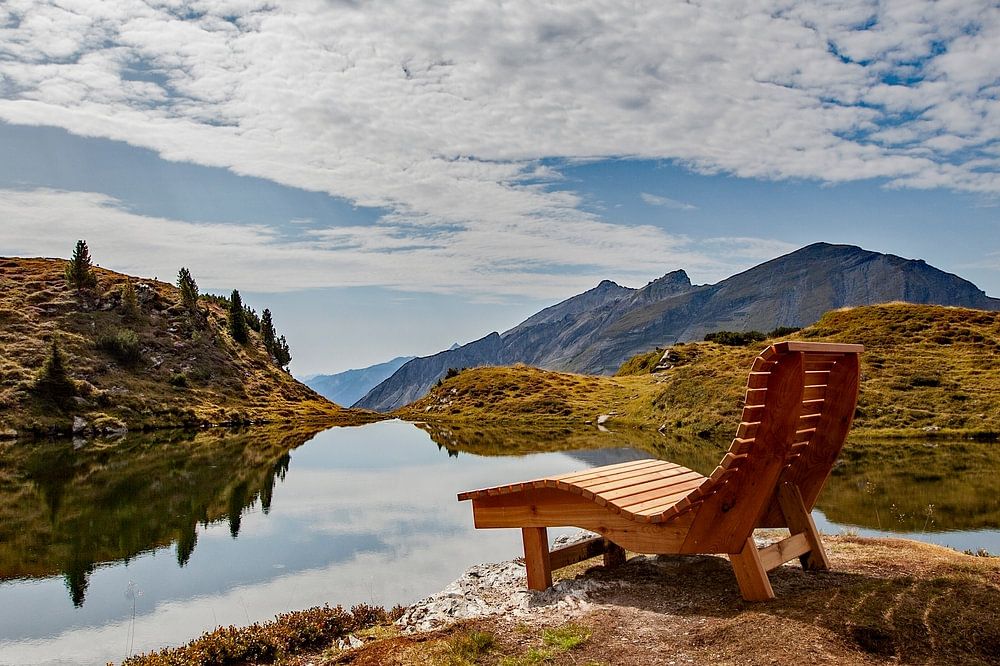 Eine Liege am Krummschnabelsee mit einer schönen Wolkenstimmung