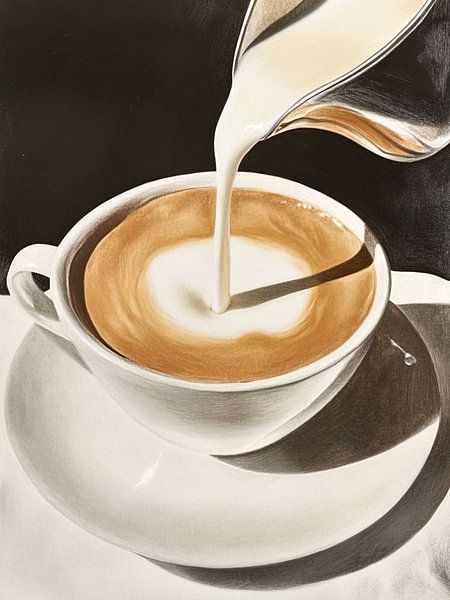Ein sanfter Milchstrom, der sich mit kräftigem Espresso vermischt und die Wärme eines perfekten Kaffeemoments einfängt. Ideal für Küchen oder Cafés – bringt gemütliche Atmosphäre und zeitlose Café-Kultur in Ihren Raum.
