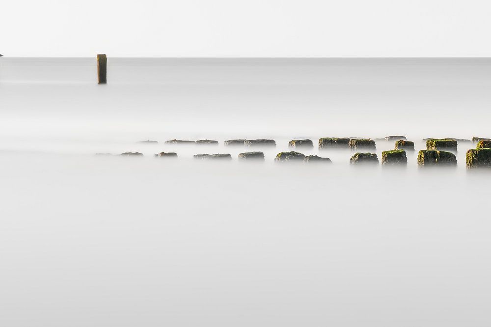 Eine Verschnaufpause auf Zeeuws-Vlaanderen ist ein minimalistisches Foto einer Meereslandschaft mit Ruhe, Einfachheit und einem Gefühl der Zeitlosigkeit als Hauptbestandteile. Mit einer langen Verschlusszeit aufgenommen, habe ich die Bewegung des Wassers vollständig angehalten. Dadurch kommt die ruhige Atmosphäre des Augenblicks besonders gut zur Geltung.