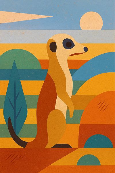 Bestelle dieses abstrakte Wandbild Eine geometrische Illustration eines Erdmännchens. von Johannes als Reproduktion auf Leinwand, Alu-Dibond, als Poster, Fototapete oder Acrylglasbild.