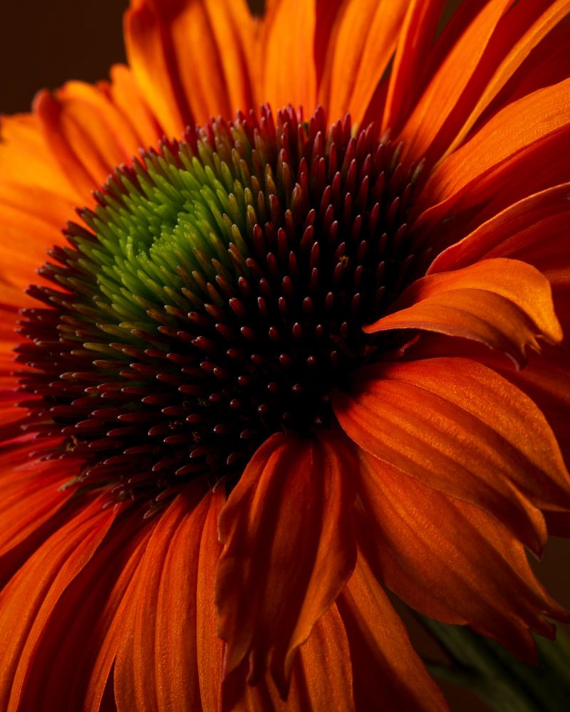 "Eine orangefarbene Echinacea (Sonnenhut) mit ihrer Blüte im Licht" ist ein Makrofoto von einer Blüte einer einfachen Echinacea. In den Niederlanden wird diese Pflanze auch "Zonnehoed" genannt. Ich vermute, dass die Blume diesen Namen der Form der Blüte (Hut mit Wulst) und der Tatsache verdankt, dass sie in der Sonne steht (blüht in den Niederlanden etwa im Juli - August).