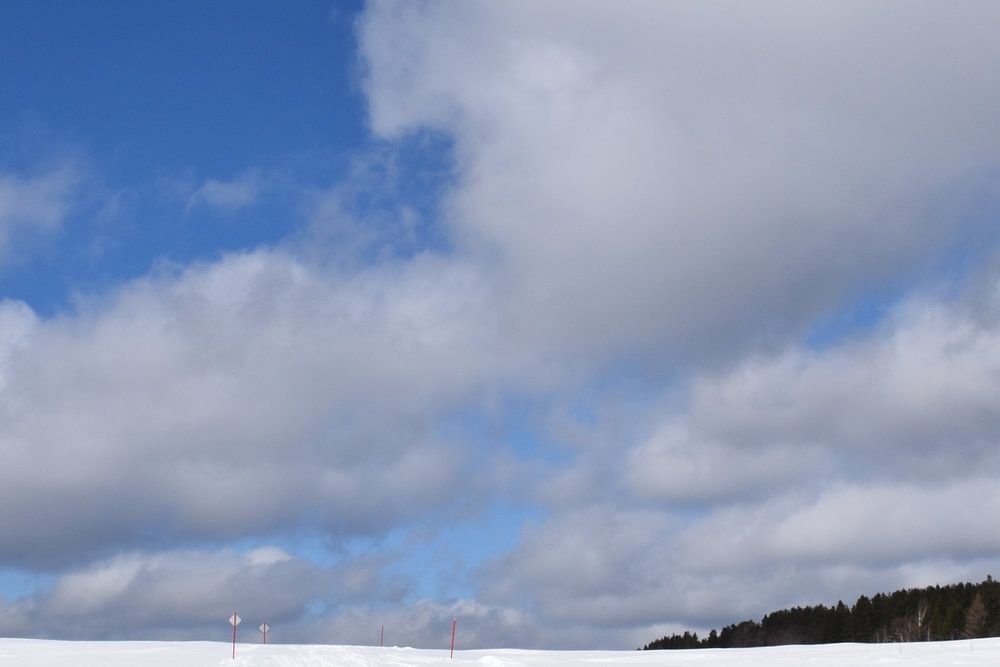 Eine verschneite Gegend unter einem Winterhimmel, Quebec, Kanada