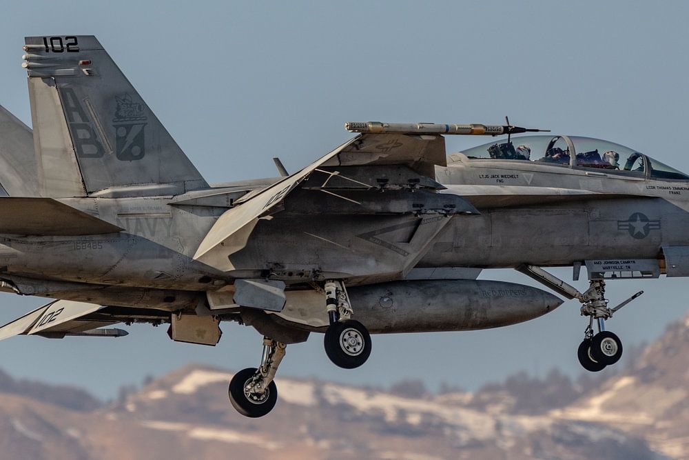 Eine Boeing F/A-18F Super Hornet (von der Einheit VFA-11 "Red Rippers", 168485) der US Navy, die vom Flugzeugträger USS Harry S. Truman (CVN 75) kommt, ist auf dem Luftwaffenstützpunkt Aviano anwesend, um an einer Militärübung teilzunehmen. Neben dieser F/A-18 Super Hornet nahmen noch 3 weitere Super Hornets an der Übung teil.