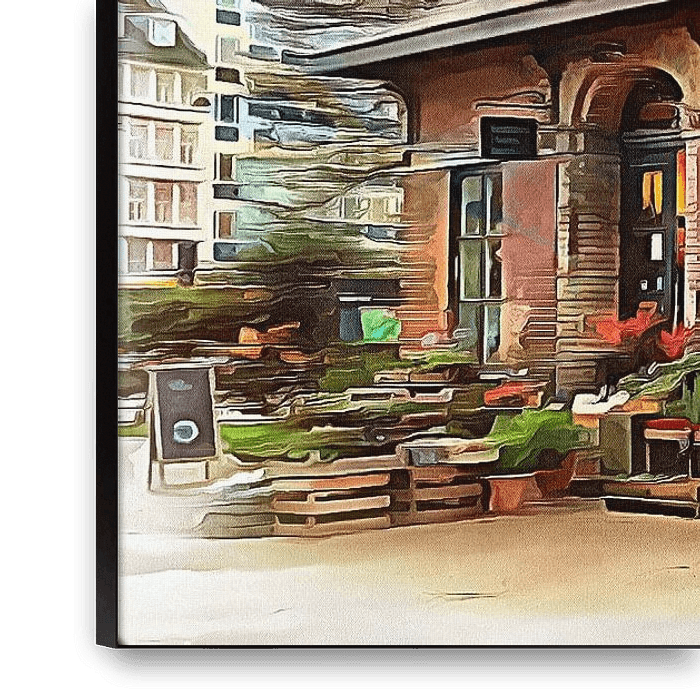 Ihre gewählte Kunst auf Leinwand, gespannt in einem Aluminiumrahmen. Schnell und einfach austauschbar für eine frische Ausstrahlung und ganz nach Ihren Wünschen.