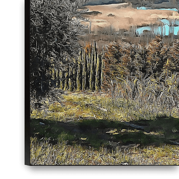 Ihre gewählte Kunst auf Leinwand, gespannt in einem Aluminiumrahmen. Schnell und einfach austauschbar für eine frische Ausstrahlung und ganz nach Ihren Wünschen.
