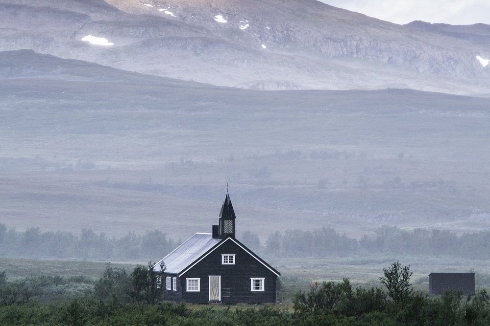 Einsame kleine Kirche im hohen Norden Norwegens, Sennalandet.