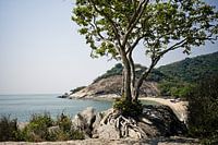 Hoch über dem Strand von Sai Noi in Thailand verkörpert dieser robuste Baum die Widerstandsfähigkeit und die Harmonie zwischen wilder Natur und beruhigendem Meer und bietet einen bezaubernden Anblick.