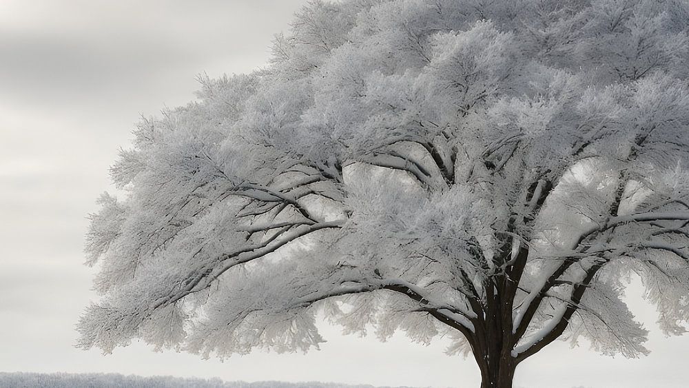 Wollten Sie schon immer ein digitales Bild von einem verschneiten Baum als Wanddekoration? Dann ist dies eine tolle Illustration für Ihre Wand.