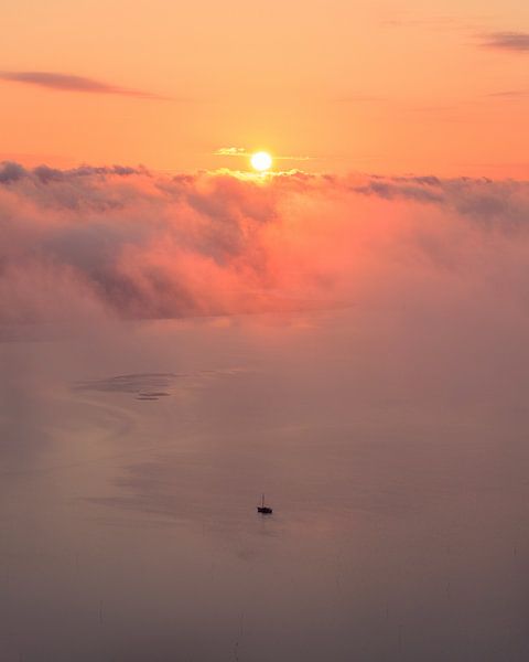 Über „Einsames Segelboot im Morgennebel“ von Ewold Kooistra