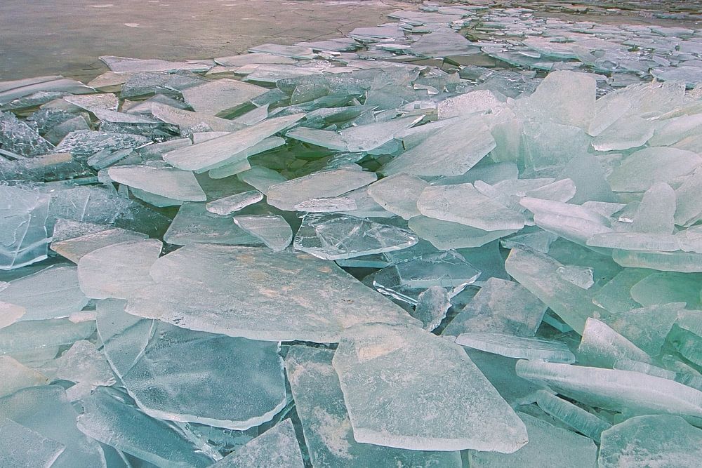 Zerkleinerndes Eis entlang des Afsluitdijk. Diese Fotos wurden am 17. Februar 2021 in der Nähe von Breezand aufgenommen. Der kurze Winter ist vorbei.