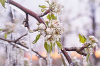 Nachtfrost im April. Für die Obstbauern in der Betuwe ist dies eine spannende Zeit. Damit die Knospen der Obstbäume nicht erfrieren, werden die Bäume während des Nachtfrostes besprüht.