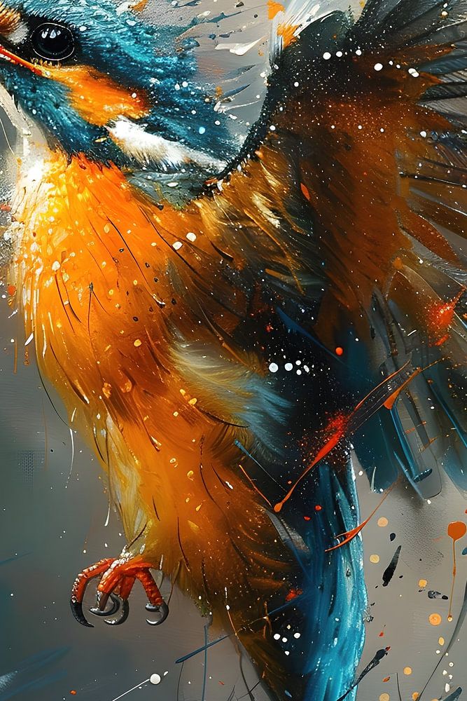 Eisvogel im Flug" ist mehr als nur eine Naturstudie, es ist eine Hommage an die Schönheit und Vitalität der Natur.