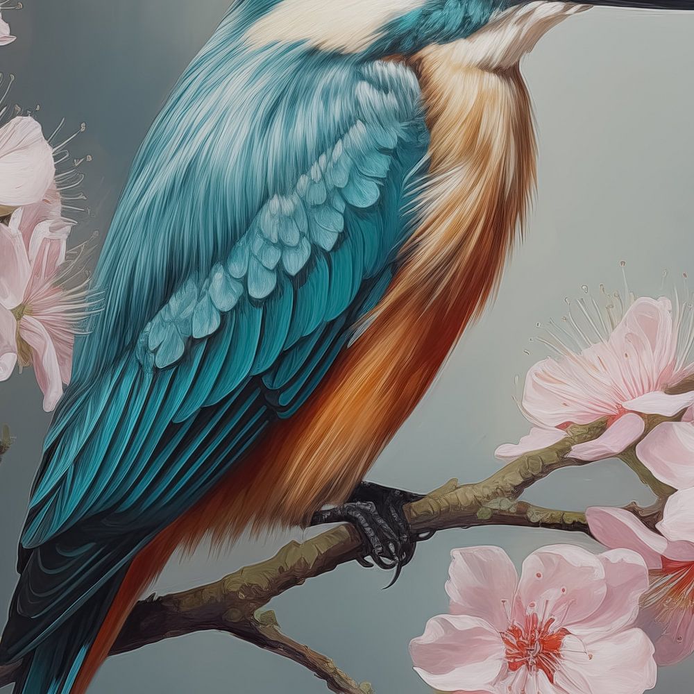 Eisvogel auf einem Ast mit Blüte