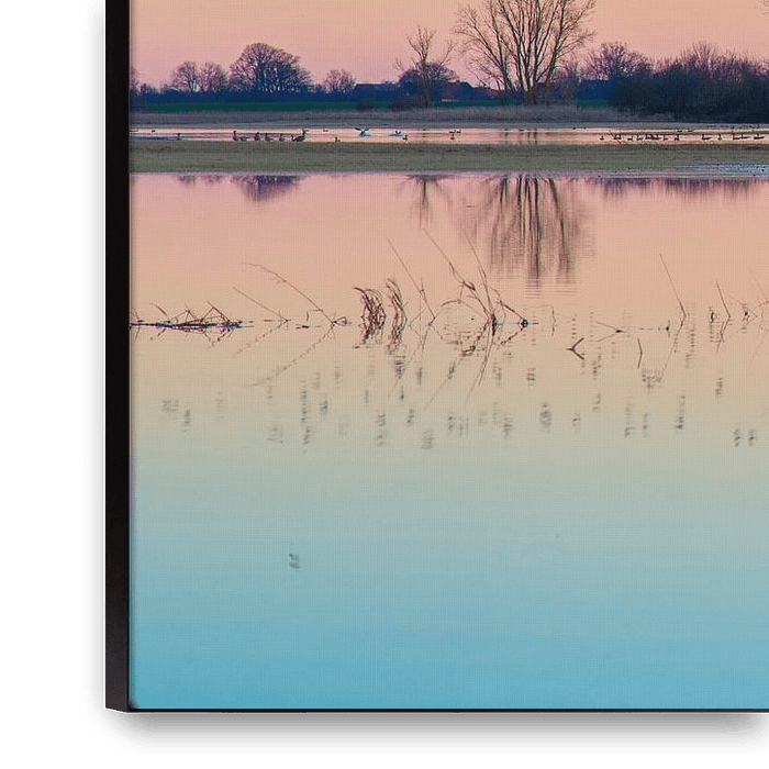 Ihre gewählte Kunst auf Leinwand, gespannt in einem Aluminiumrahmen. Schnell und einfach austauschbar für eine frische Ausstrahlung und ganz nach Ihren Wünschen.