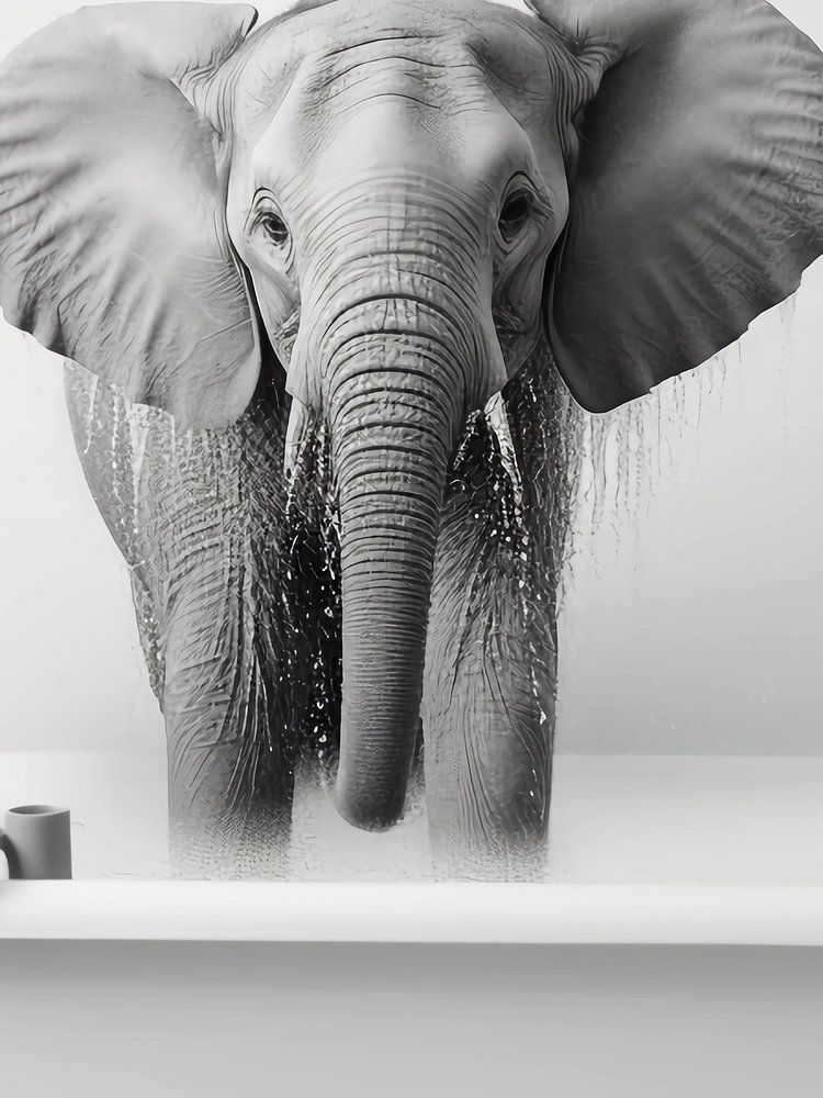 schwarzer und weißer Elefant in der Badewanne