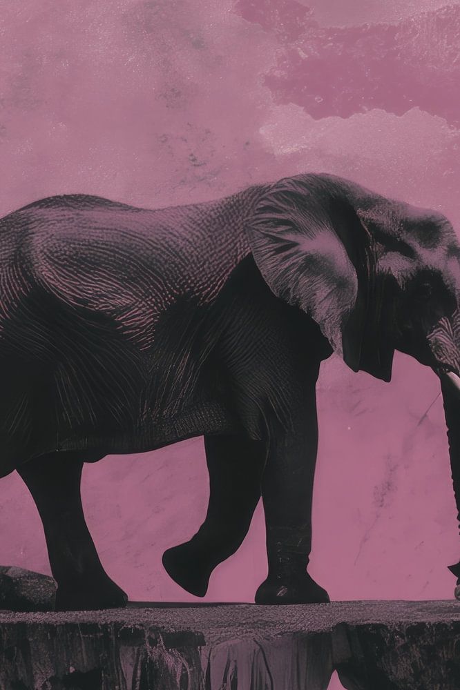 "Elephant by Moonshine" ist ein faszinierendes Kunstwerk, das die majestätische Statur eines Elefanten vor einem surrealen lila Hintergrund mit einem riesigen Mond zeigt. Der Elefant scheint auf einer schmalen, schwimmenden Brücke zu gehen, was ein Gefühl von Geheimnis und Abenteuer hervorruft. Die detaillierte Textur des Elefanten kontrastiert wunderbar mit dem verträumten, monochromen Hintergrund und erzeugt einen faszinierenden visuellen Effekt. Dieses Kunstwerk ist perfekt für Fans der surrealistischen Kunst und verleiht jedem Interieur einen Hauch von Magie und Fantasie.