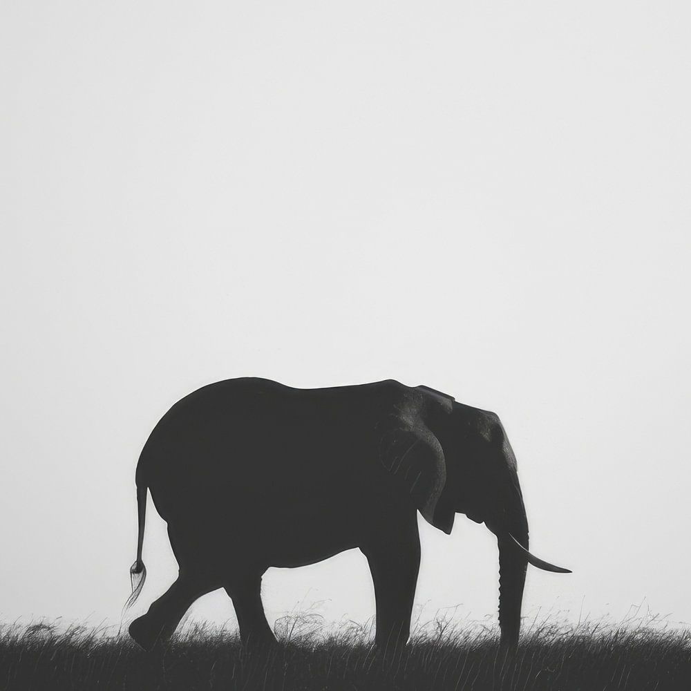 Dieses eindrucksvolle Schwarz-Weiß-Bild zeigt die Silhouette eines Elefanten, der friedlich in einer weiten Landschaft wandert. Die minimalistische Komposition und der starke Kontrast zwischen dem Elefanten und dem hellen Hintergrund schaffen ein Gefühl von Ruhe und Erhabenheit. Ideal für Naturliebhaber und diejenigen, die die majestätische Präsenz und die stille Kraft der Wildnis in ihrer Einrichtung einfangen möchten. Dieses Kunstwerk bringt eine zeitlose Eleganz und eine tiefe Verbindung zur Natur in jeden Raum.