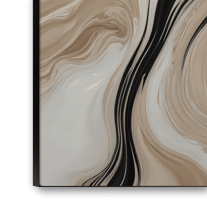Dieses Kunstwerk mit seinen eleganten Wellenlinien und einer subtilen Farbpalette aus Schwarz-, Weiß-, Beige- und Brauntönen erweckt ein Gefühl der Ruhe und Kontemplation. Das minimalistische Design ist sowohl modern als auch zeitlos, was es zu einer perfekten Ergänzung für jeden zeitgenössischen Raum macht. Die fließenden Formen und das monochrome Farbschema machen ihn zu einem vielseitigen Möbelstück, das sowohl in ein geschäftiges Büro als auch in ein ruhiges Schlafzimmer passt. Der sanfte Kontrast zwischen den Farben schafft eine Tiefe, die die Aufmerksamkeit auf sich zieht, ohne sie zu erdrücken. Ideal für alle, die ihre Innenräume mit einem stilvollen und subtilen Kunstwerk aufwerten wollen.