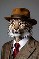 Bestelle das digitale Kunst Bild Eleganter Luchs mit Hut von Art & Soul Creations als Kunstdruck auf Leinwand, Alu-Dibond, als Poster, Fototapete oder Acrylglasbild.