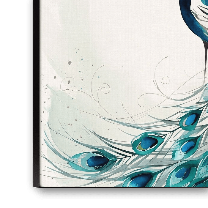 Dieses wunderschöne Design zeigt einen eleganten Pfau in einem minimalistischen Aquarellstil. Die tiefen Blau- und Grüntöne der Pfauenfedern vermitteln ein Gefühl von Raffinesse und Schönheit. Mit seinen einfachen, aber markanten Formen strahlt das Design Ruhe und Klasse aus und eignet sich perfekt für moderne und stilvolle Innenräume. Die fließenden Linien der Federn sorgen für ein dynamisches Element, während der neutrale Hintergrund die ganze Aufmerksamkeit auf den Pfau lenkt. Dieses Kunstwerk würde sich hervorragend in einem Schlafzimmer oder Büro machen, wo es einen Hauch von Farbe und Eleganz hinzufügt, ohne überwältigend zu sein. Ob Sie moderne Kunst lieben oder einfach nur ein beruhigendes Stück für Ihren Raum suchen, dieses Design ist eine ideale Wahl.