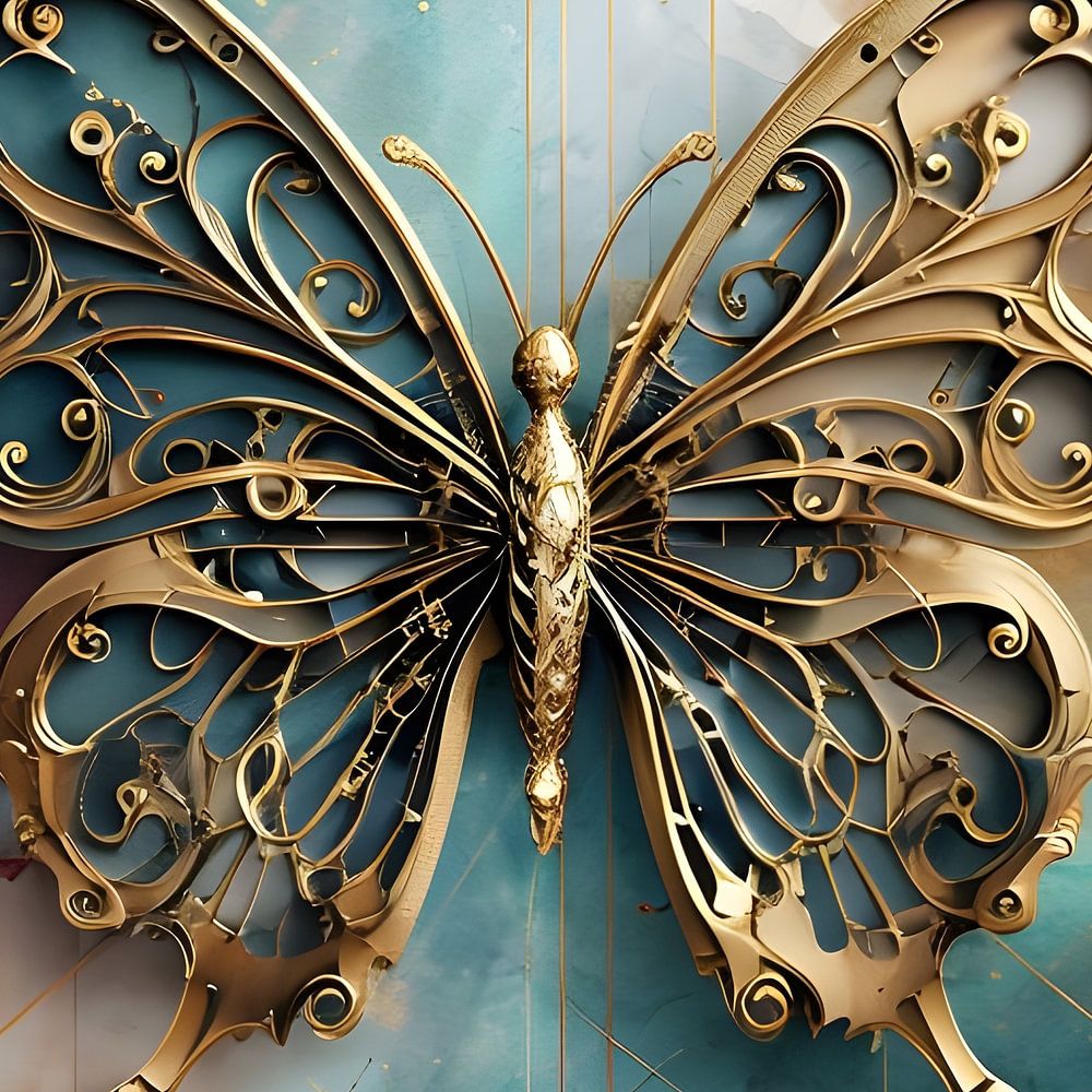 Eleganter goldener Schmetterling mit verschlungenen Mustern auf Alkoholtinten-Hintergrund