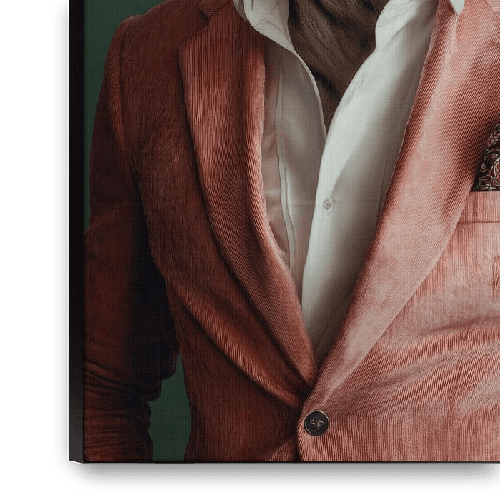 In einer faszinierenden Verbindung aus Wildheit und Eleganz tritt eine schillernde Figur hervor: der majestätische Kopf eines Tigers trifft auf den menschlichen Körper eines Gentlemans in einem samtigen, roséfarbenen Anzug. Die kraftvollen Augen strahlen Intelligenz und Anmut aus, während das stilvolle Outfit mit einem Hauch von…