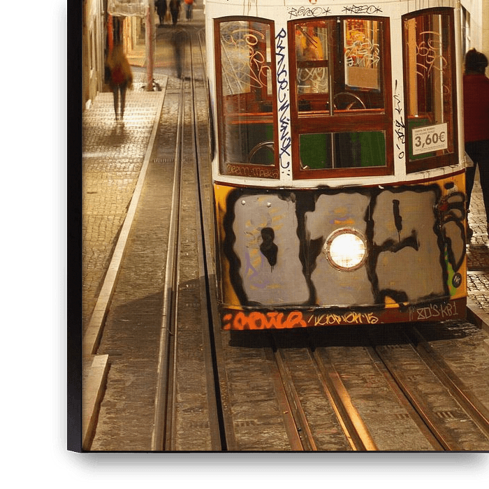 Bestelle das Foto Elevador da Bica in der Abenddämmerung im Bairro Alto, Lissabon, Portugal von Torsten Krüger als Reproduktion auf Leinwand, Alu-Dibond, als Poster, Fototapete oder Acrylglasbild.