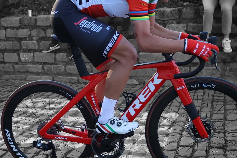 Elisa Balsamo beim Erklimmen der mythischen Wand von Geraardsbergen in ihrem italienischen Meistertrikot. Die Regenbogenstreifen an den Ärmeln ihres Trikots und ihr Red Trek-Rad vervollständigen das Bild. Einzigartiges Foto, aufgenommen während des Omloop het nieuwsblad. Ich bin ein Fan, jetzt holen Sie sich dieses schöne Stück in Ihr Zuhause für Italien-Fans und Fans des Frauenradsports. Auch toll, um eine Wand in einem Fahrradgeschäft zu verschönern!