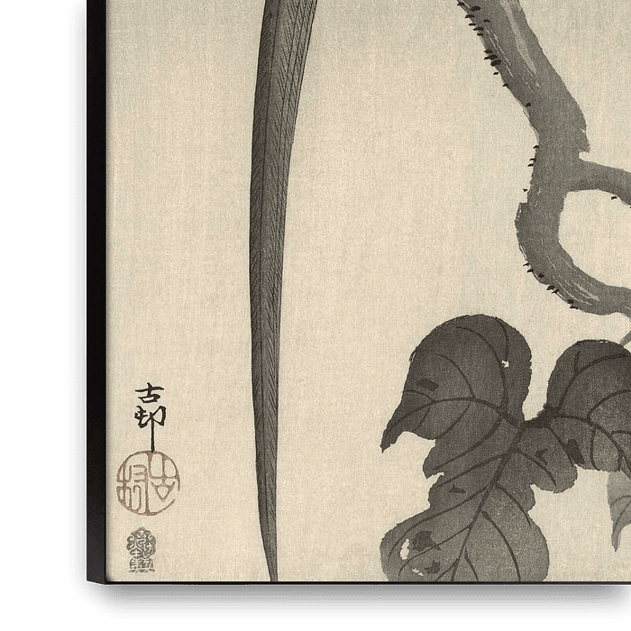 Bestelle Elster auf einem Ast des Ohara Koson als Reproduktion auf Leinwand, Alu-Dibond, als Poster, Fototapete oder Acrylglasbild.
