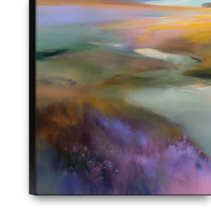 Ihre gewählte Kunst auf Leinwand, gespannt in einem Aluminiumrahmen. Schnell und einfach austauschbar für eine frische Ausstrahlung und ganz nach Ihren Wünschen.