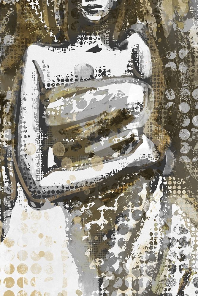 In diesem Werk sehen Sie einen Engel mit goldgelben Farben auf einem Hintergrund aus Hellgrau und Weiß. Die Grundlage für dieses Werk ist eine Kohlezeichnung. Diese Zeichnung wurde digitalisiert und digital mit goldgelben Farbtönen eingefärbt. Der Engel schaut dir direkt in die Augen und trägt ein langes Faltenkleid.