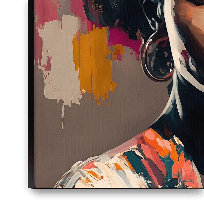 Bestelle das digitale Kunst Bild Entschlossener Blick: Die Macht einer klugen Frau of Colour von Steinfox Art als Reproduktion auf Leinwand, Alu-Dibond, als Poster, Fototapete oder Acrylglasbild.