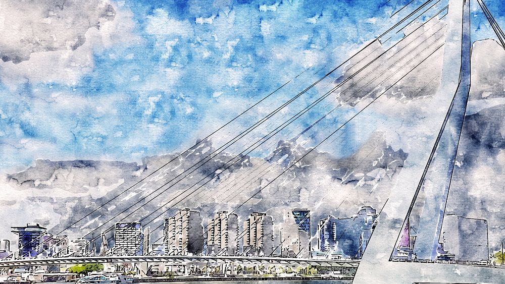 Digitales Aquarell der Erasmus-Brücke in Rotterdam (Südholland, Niederlande).
