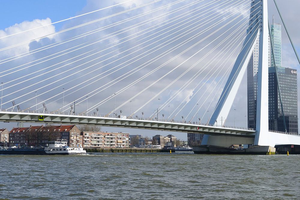 Erasmusbrücke, Rotterdam, leicht bewölkter Himmel