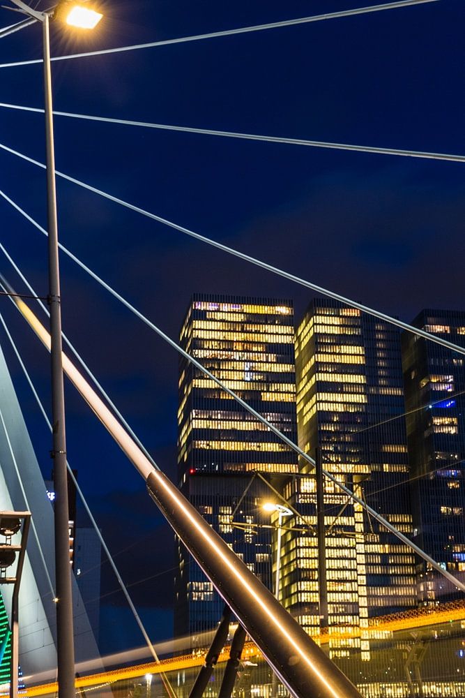 Erasmusbrücke in Rotterdam am späten Abend.
