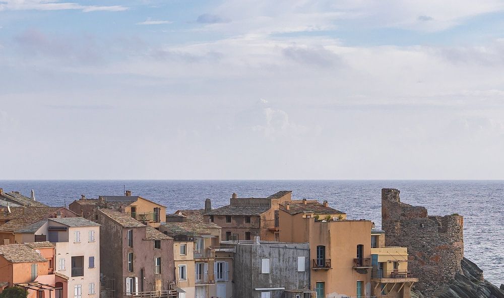 Korsika ist eine wunderschöne Insel im Mittelmeer. Sie ist zerklüftet und gebirgig und hat, vor allem auf der Westseite und im hohen Norden, eine schöne und zerklüftete Küste. Hier sehen wir den Touristenort Erbalunga und die tosenden Wellen, die an ihm zerschellen.