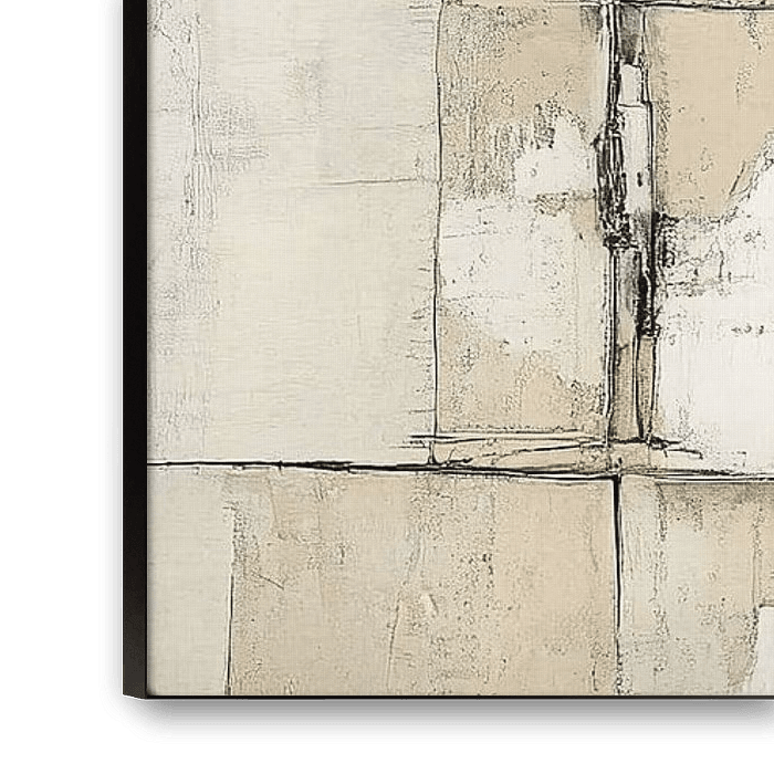 Erdtöne | Stille Harmonie - Dieses abstrakte Gemälde präsentiert eine Palette neutraler Erdtöne, die sich aus Blöcken und horizontalen Bändern zusammensetzen und ein Gefühl von Ruhe und Harmonie hervorrufen.