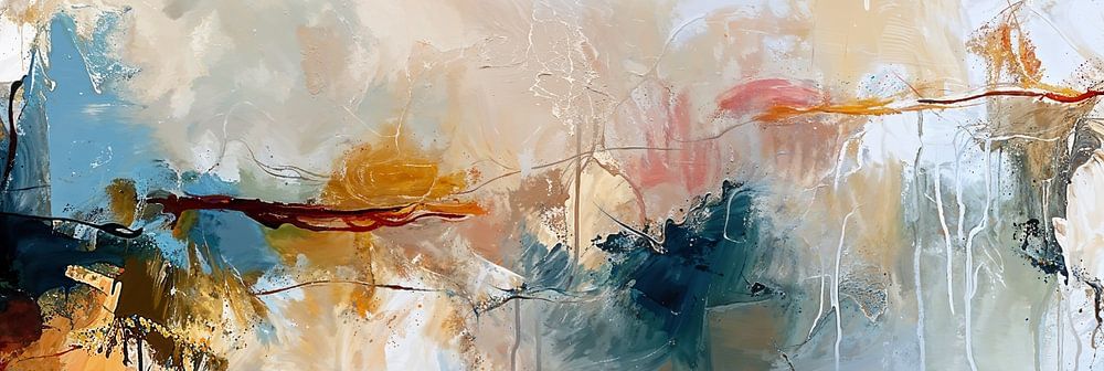 Erdtöne - Das Kunstwerk ist ein modernes abstraktes Gemälde, in dem ein harmonisches Chaos von Farben und Formen den Betrachter zur eigenen Interpretation einlädt. Die Pinselstriche sind dynamisch und vielschichtig, mit einer Palette, die zwischen warmen Erdtönen und kühleren Blau- und Grünnuancen balanciert, durchsetzt mit weißen und schwarzen Akzenten, die Tiefe schaffen.