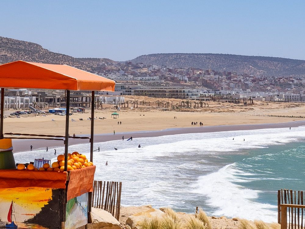 Erfrischender Orangensaft zum Verkauf am Kuss von Taghazout in Marokko