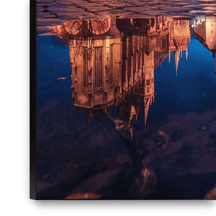 Ihre gewählte Kunst auf Leinwand, gespannt in einem Aluminiumrahmen. Schnell und einfach austauschbar für eine frische Ausstrahlung und ganz nach Ihren Wünschen.