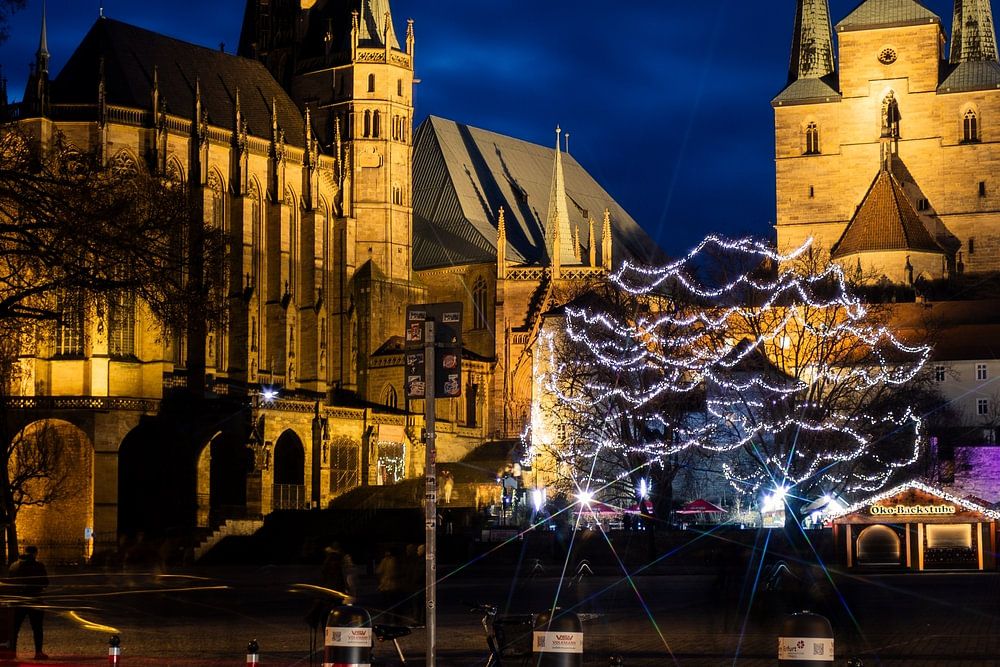 Der Domplatz ist einer der bedeutendsten historischen Orte Erfurts. Der Dom selbst blickt auf über 1000 Jahre Geschichte zurück und prägt das Stadtbild maßgeblich. Auch nach den Feiertagen bleibt der Platz ein Ort der Begegnung und Reflexion.