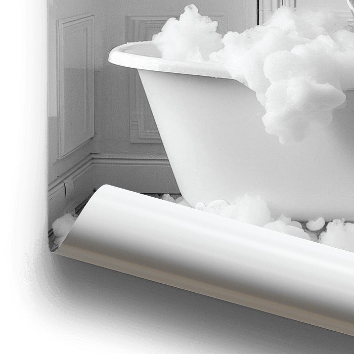 Dieses einzigartige Badezimmerbild zeigt eine erhabene Giraffe, die in ihrer Badewanne entspannt und Ihrem Badezimmer eine ganz besondere Note verleiht. Die Schwarz-Weiß-Fotografie verleiht dem Bild eine zeitlose Eleganz und betont die Details der Szene, während es gleichzeitig eine charmante und einzigartige Ergänzung für Ihre…