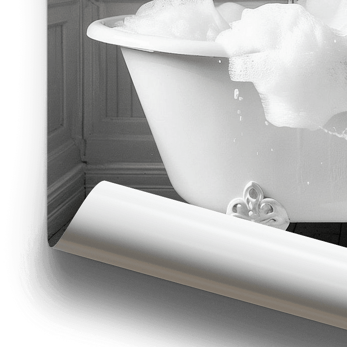 Dieses einzigartige Badezimmerbild zeigt eine erhabene Giraffe, die in ihrer Badewanne entspannt und Ihrem Badezimmer eine ganz besondere Note verleiht. Die Schwarz-Weiß-Fotografie verleiht dem Bild eine zeitlose Eleganz und betont die Details der Szene, während es gleichzeitig eine charmante und einzigartige Ergänzung für Ihre…