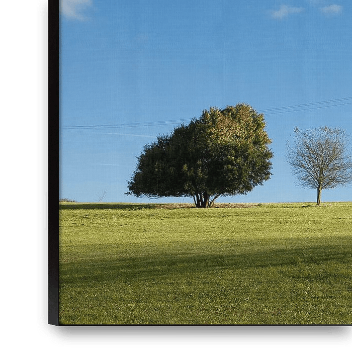 Bestelle dieses Landschafts-Wandbild Erholsame grüne Landschaft mit strahlend blauem Himmel von Pieter Wolthoorn als Reproduktion auf Leinwand, Alu-Dibond, als Poster, Fototapete oder Acrylglasbild.