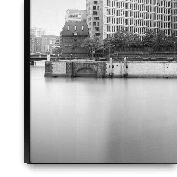 Bestelle das Foto Ericusspitze Hamburg (b/w) von Florian Schmidt als Reproduktion auf Leinwand, Alu-Dibond, als Poster, Fototapete oder Acrylglasbild.