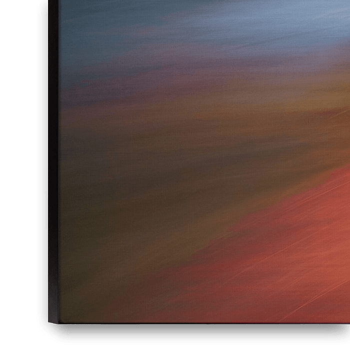 Ihre gewählte Kunst auf Leinwand, gespannt in einem Aluminiumrahmen. Schnell und einfach austauschbar für eine frische Ausstrahlung und ganz nach Ihren Wünschen.