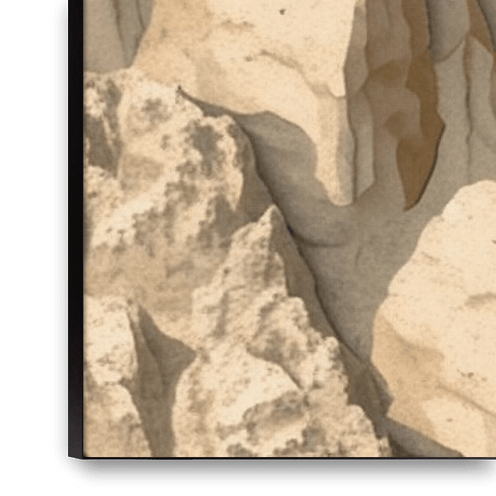 „Erosionsechos“ zeigt eine faszinierende Reihe von Felsformationen, die von der Zeit und den Elementen geformt wurden. Glatte Oberflächen treffen auf scharfe, definierte Kanten in einem komplizierten natürlichen Muster, das die raue Schönheit der geologischen Transformation unterstreicht. Die in sanften Beige- und Sandsteintönen…