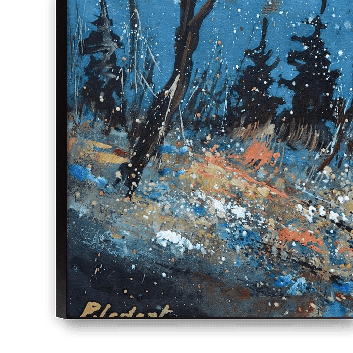 Bestelle diese Malerei Erster Schnee von pol ledent als Reproduktion auf Leinwand, Alu-Dibond, als Poster, Fototapete oder Acrylglasbild.