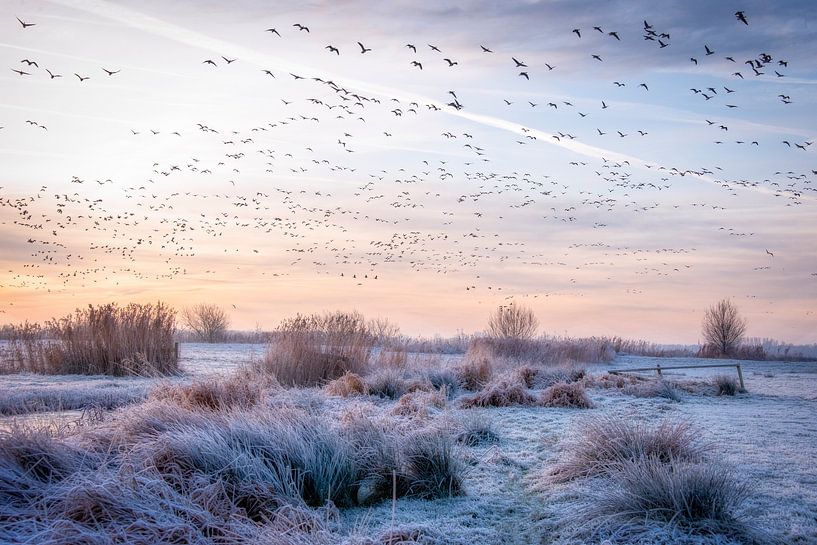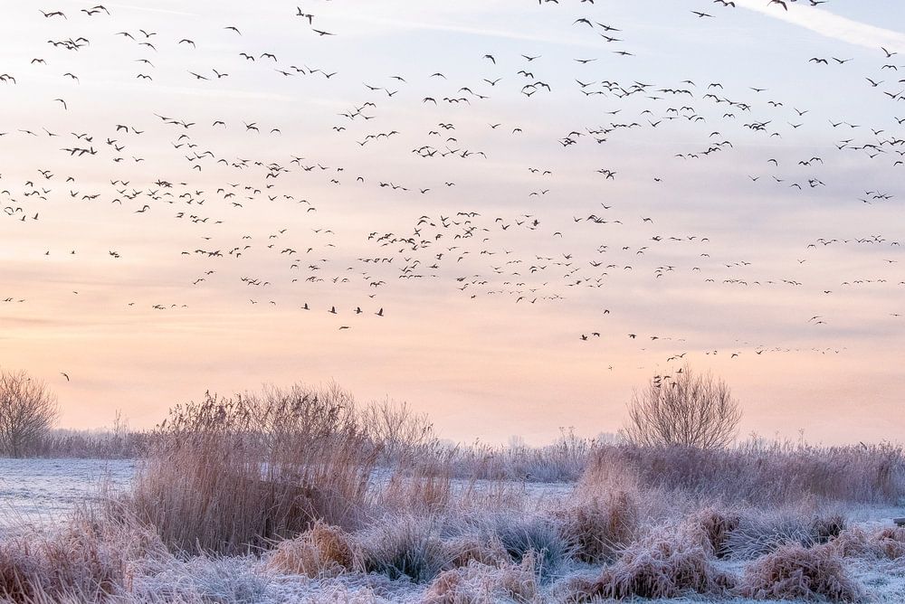 Am frühen Morgen wachen die Gänse auf und gehen auf Nahrungssuche. Vor allem im Winter mit Eis ist das oft eine schwierige Aufgabe.