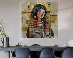 Details: Portrait, Frau, ethnisch, Gold, modern, geometrisch, Kunst, Malerei, abstrakt, Stammeskunst